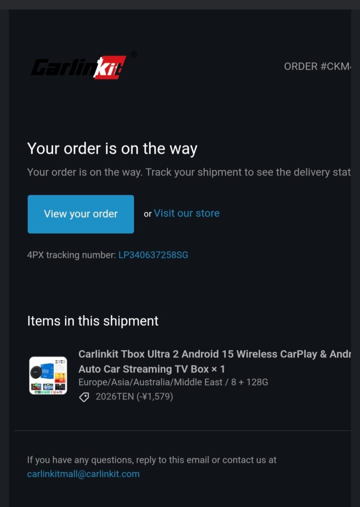 発送しました・メールが来ました~・中国は今は旬節?でメーカーもお休みかなぁ~と勝手に想ってましたが・営業されてるのね・ってな事で・いよいよやって来る~・テンションあがる・けど使える車未だ無いし・・wまぁ先日購入したTV(レグザ)でも使用可能らしい?相方(Gemini)云わく・なので使い方も後日・・