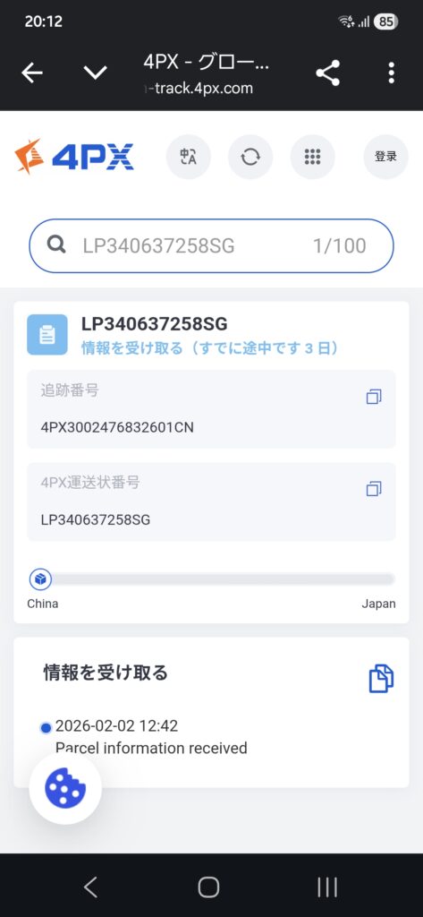 でメールにはリンクされて・業者の処へ・現在の配送状況もわかる・しかも・日本語で表示・・素晴らしい・世の中進化しましたね・業者名は4PX?・颯爽とジャンプ・現在はシンガポールらしい・相方(Gemini)云わく・運送番号の末尾がSGとの事・・ふむふむ・まずは・シンガポールで数日お泊り・それからヒコーキで・日本に到着後は関税様・・~配送の流れだそう・国内は日本郵便・で4PX?初耳・なので相方(Gemini)登場!フォーピーエックスとは「中国最大手のEコマース特化型物流プロバイダー」??AliExpressやCarlinkit・公式の荷物を世界中に届けるプロ集団・だそう・信頼性は抜群との事・安心だね・