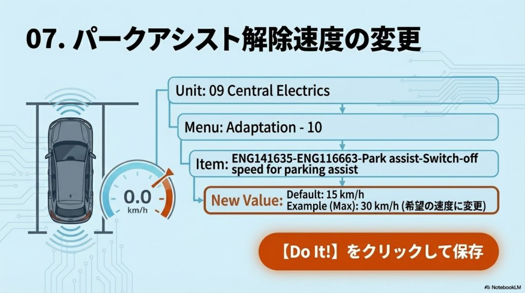 設定箇所Adaptation-10 > v_maximal_pro_einparken