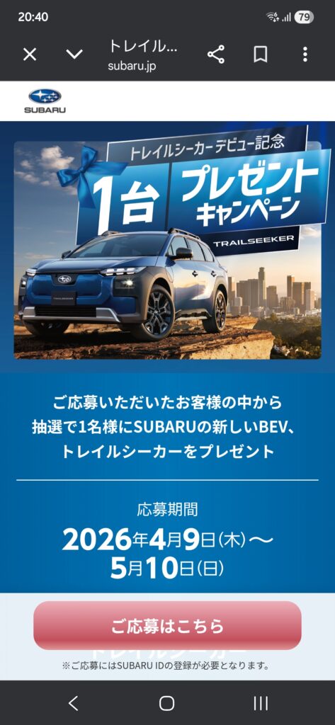 もし応募されるのであれば、スバルIDの登録が必要ですので、サイトをチェックしてみてください!