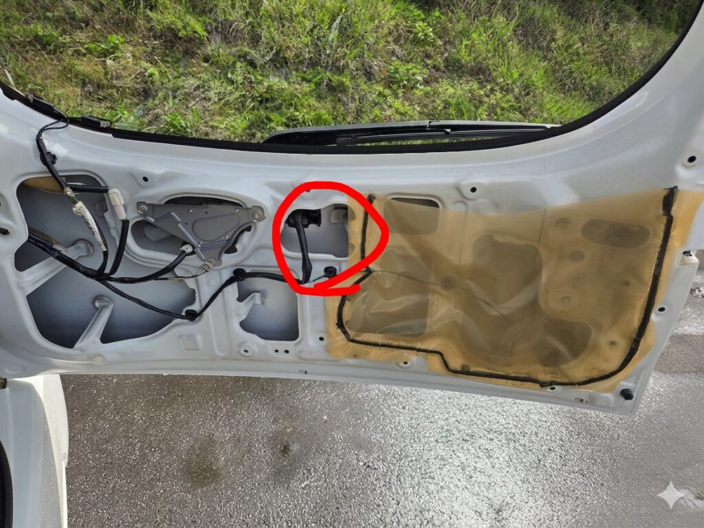 内張りを外すと、赤丸の部分にバックカメラがあります。