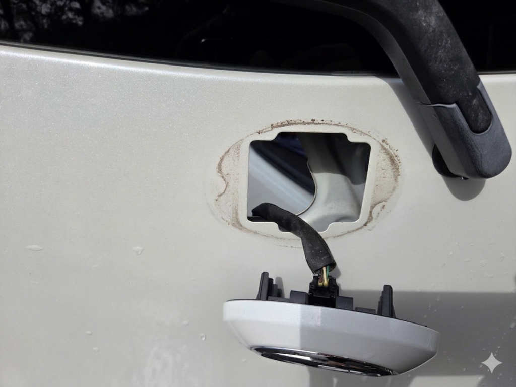仕方ないので内張りをバラし、バックカメラのカバーを外すことにしました。