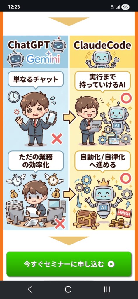 確かに、右側の「ClaudeCode」のセクションに描かれている青いロボットのキャラクター、特に「丸みを帯びた頭部」「アンテナ(耳)のような突起」「モニターのような顔の画面」という特徴が、GeminiなどのAI生成ツールで作られる一般的なロボット像と重なりますね。